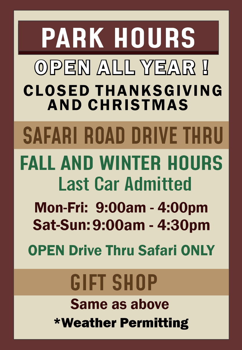 THE DRIVE THRU SAFARI IT IS OPEN EVERY DAY